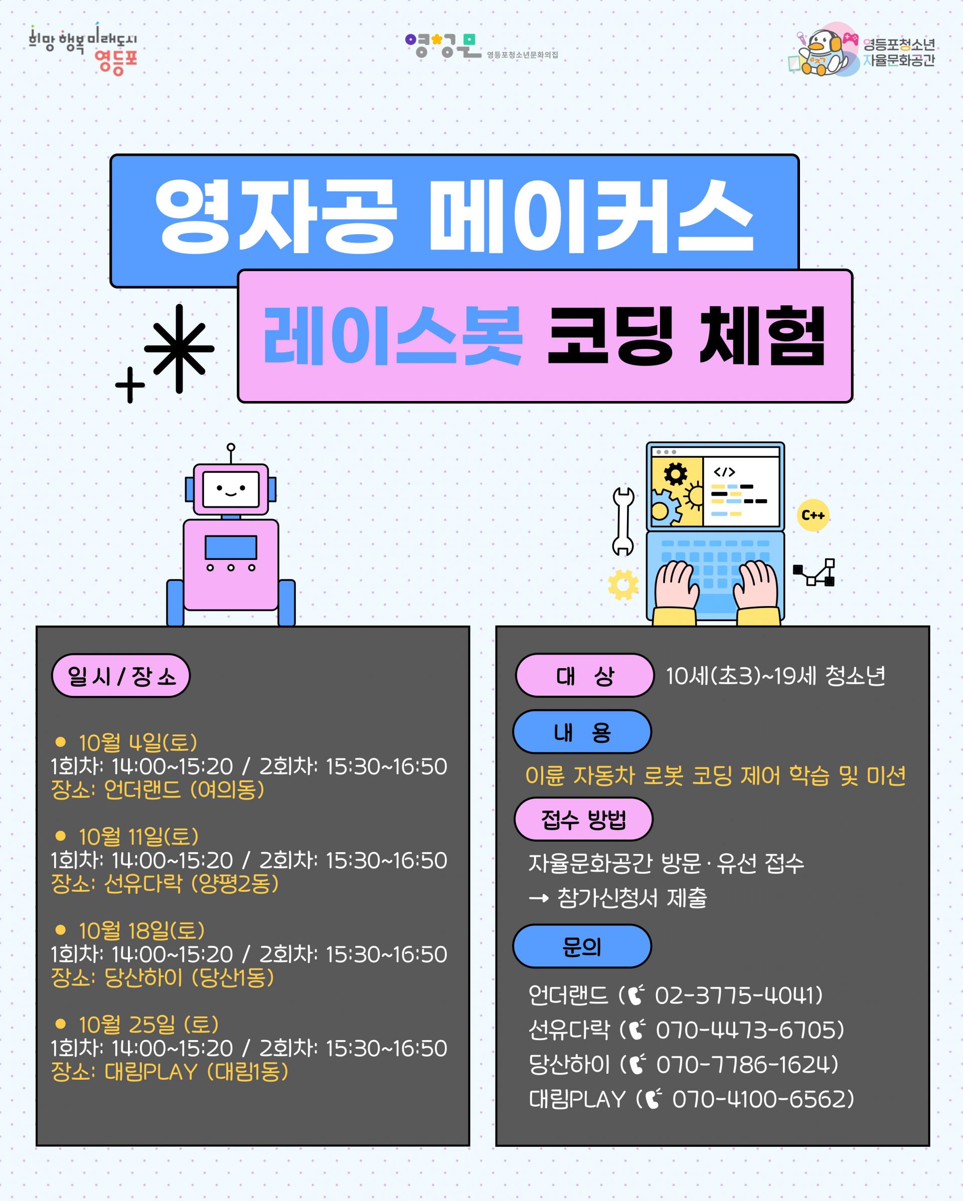 안녕하세요? 영등포청소년자율문화공간 (언더랜드, 선유다락, 대림플레이, 당산하이)에서는 영자공메이커스 4탄으로