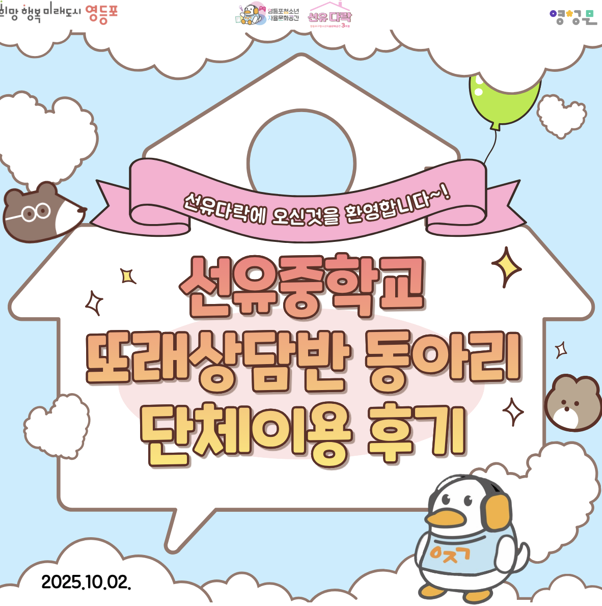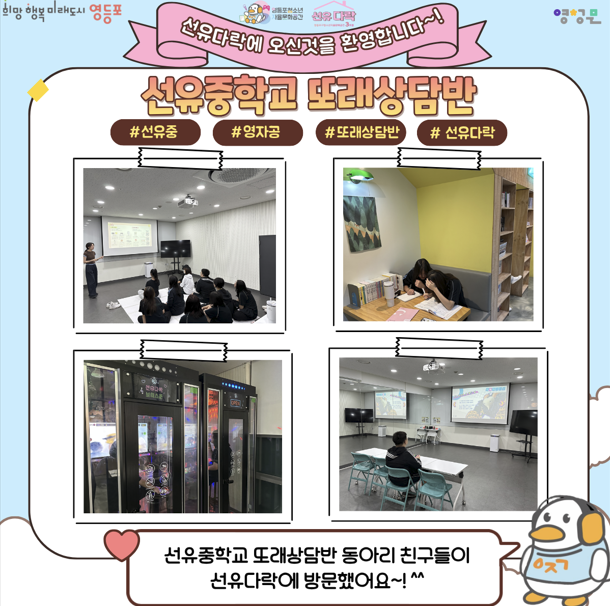 10월 2일(목)에 선유중학교 또래상담반 동아리 친구들이 선유다락에 방문해주었습니다!👏