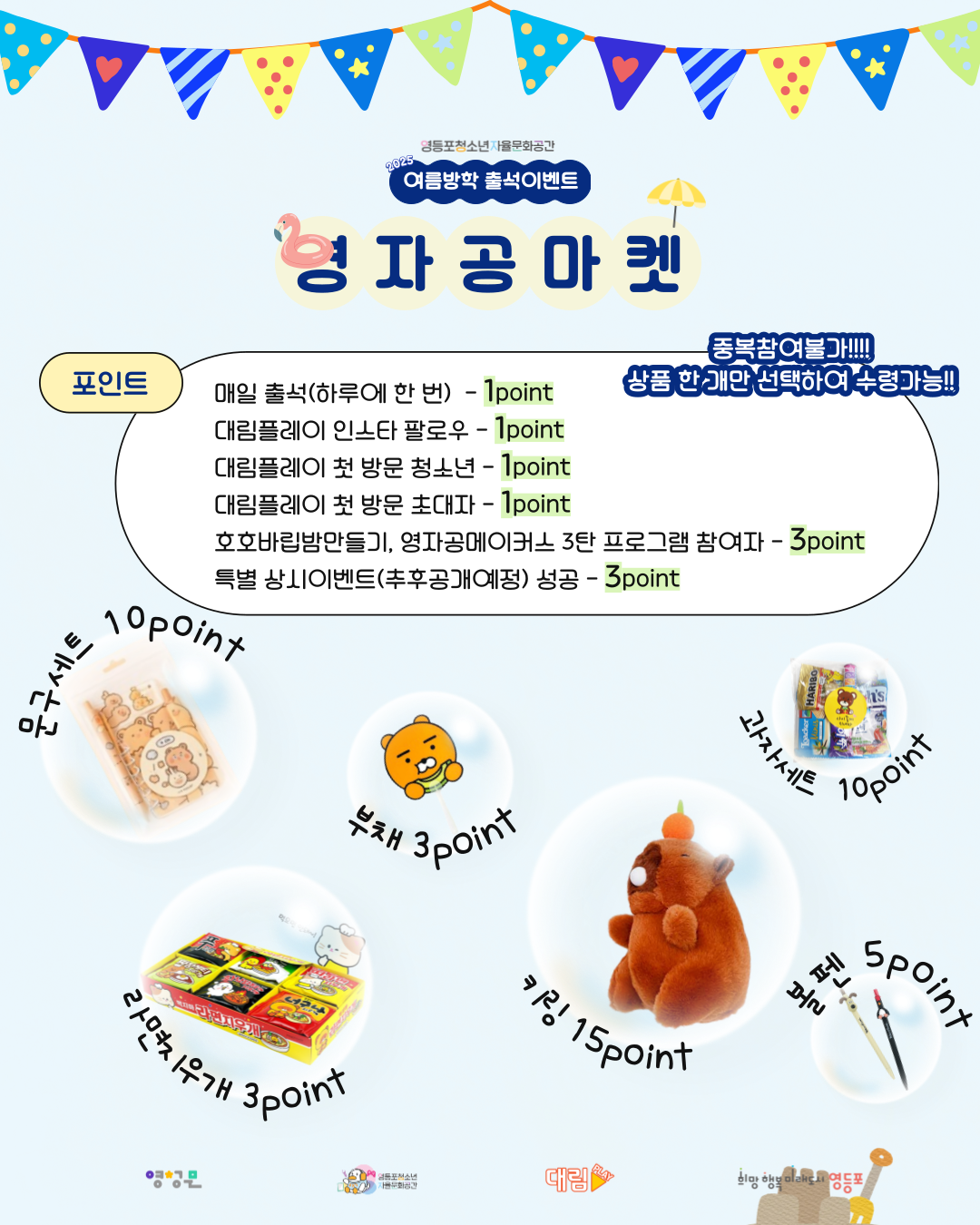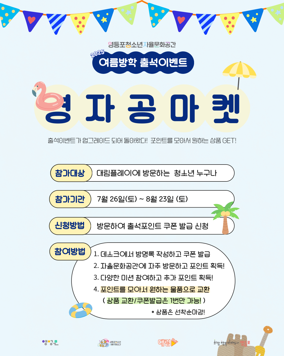 여름방학을 맞아 진행하는 출석이벤트, 대림플레이에서 우리 자주 만나요🤍🤍