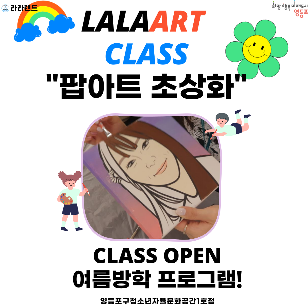 다가오는 여름방학을 맞이하여 8월 여름방학 프로그램인 "LALAATRCLASS-팝아트초상화 만들기" 프로그램을 진행하고자 합니다!👏❤️