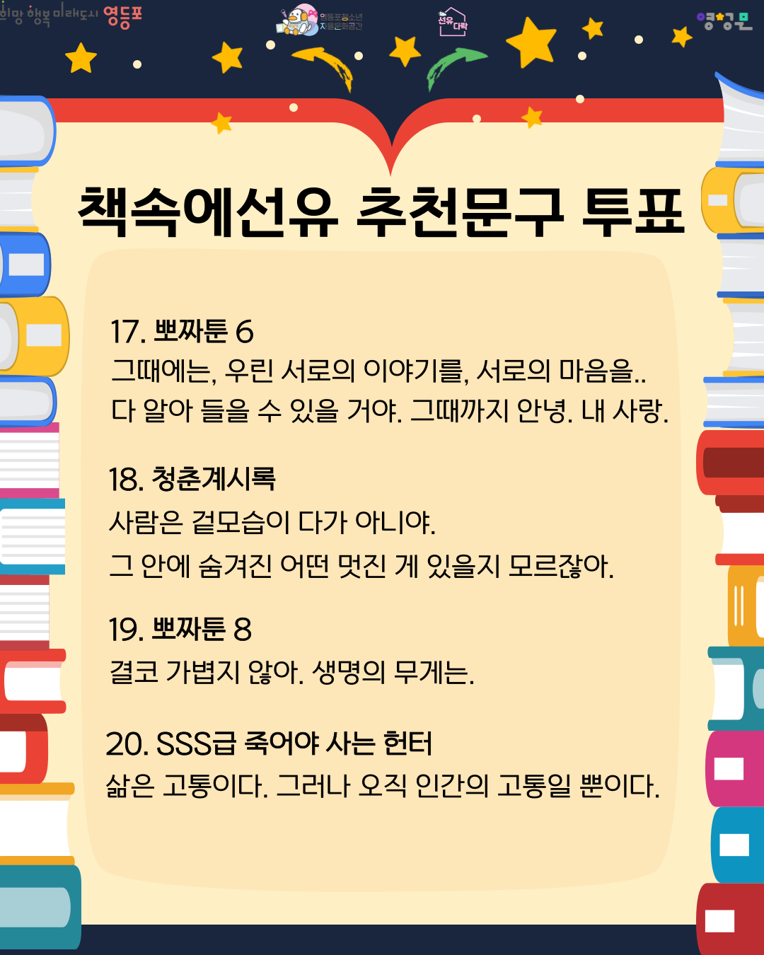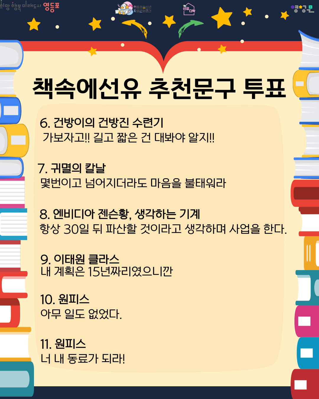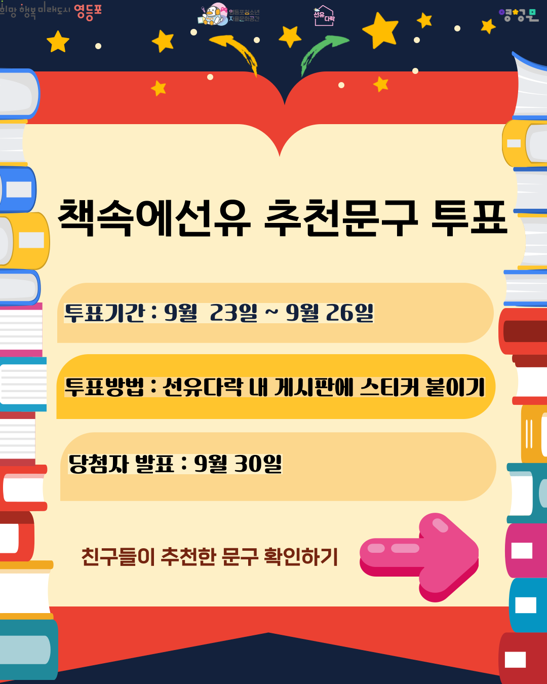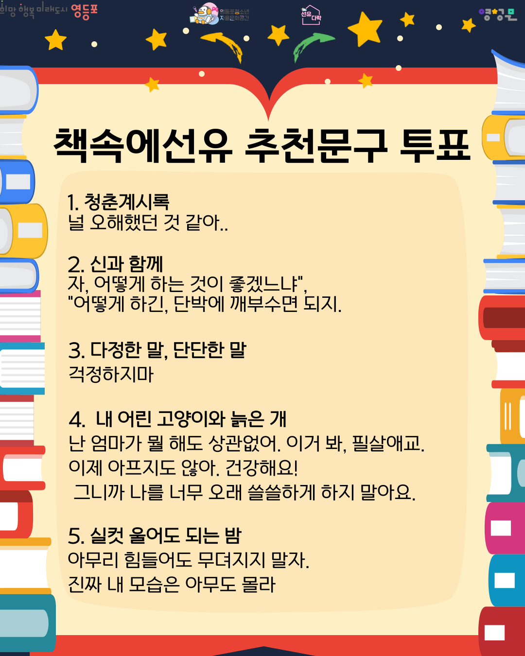 9월 이벤트로 책 속 문구를 친구들에게 추천하는 '책속에 선유'를 진행했습니다.